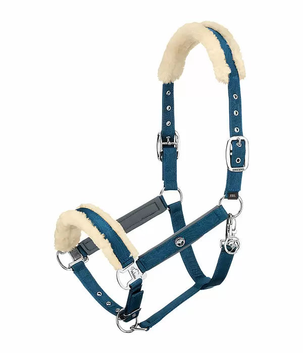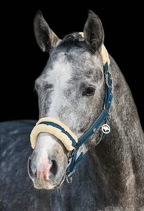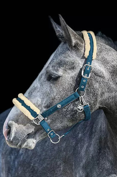 La cabezada contiene un suave acolchado de forro polar en la nuca y la muserola para evitar rozaduras. Fácilmente ajustable en la correa de la barbilla.
