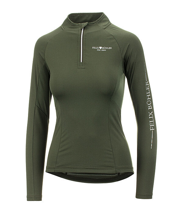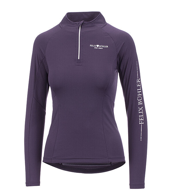 Camiseta de manga larga base layer, deportiva y funcional de manga larga con inserciones de malla bajo los brazos y un llamativo estampado del logo en la manga y el pecho. Cuello con cremallera, transpirable y de secado rápido. Bajo pedido, envío en 1 semana.