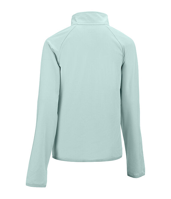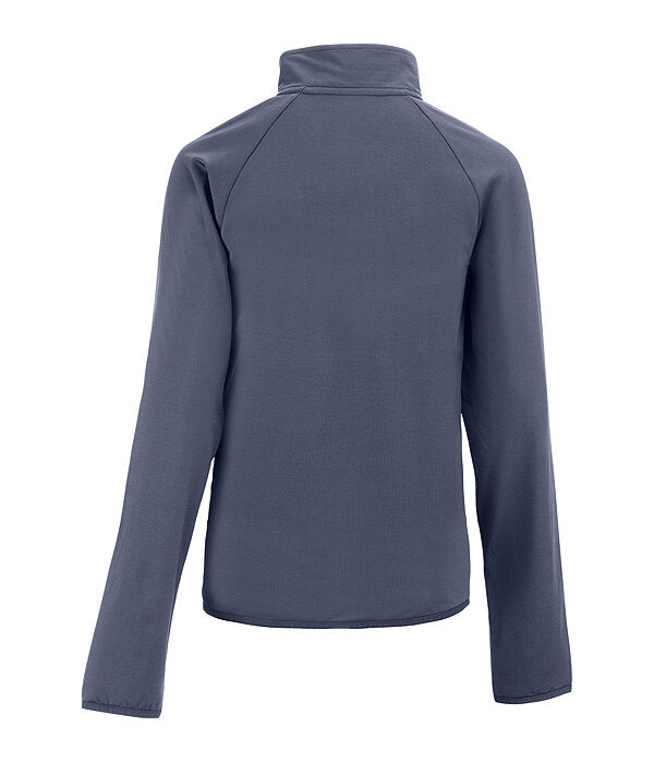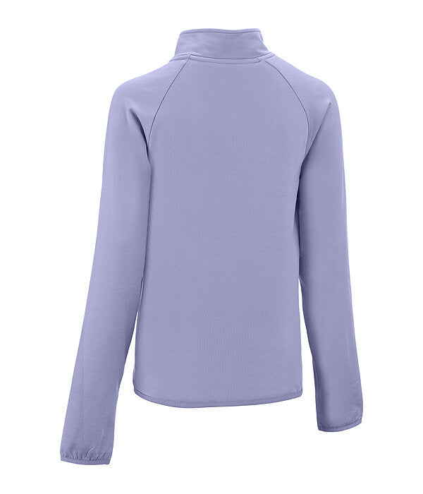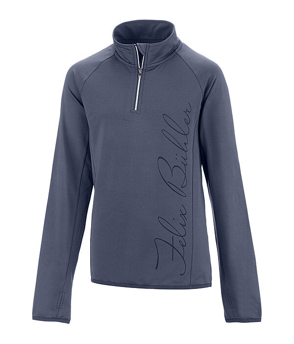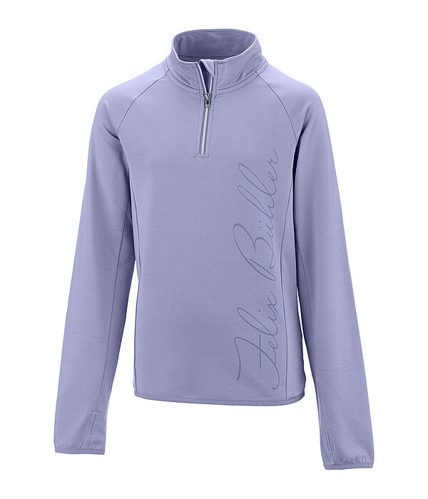 Camiseta infantil deportiva y transpirable con cuello alto.Su tejido interior la hace especialmente cómoda. Cuenta con cremallera en tono oro rosa con protector de barbilla, secado rápido, orificios para los pulgares y puños y bajo elásticos.