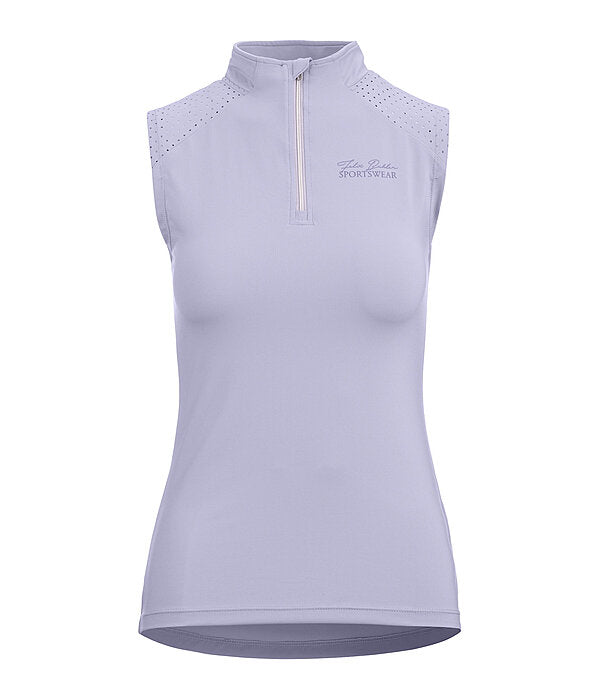 Camiseta deportiva sin mangas con cuello alto, cremallera y protector de barbilla. Ventilación óptima gracias a las perforaciones láser funcionales en hombros y espalda. Transpirable y de secado rápido. Logotipo estampado en silicona. 88 % poliéster, 12 % elastano.