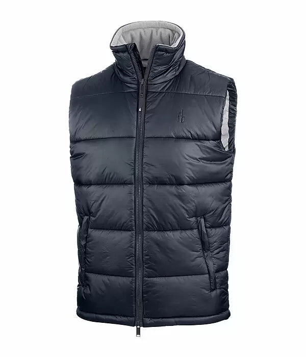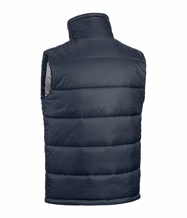 Chaleco acolchado cuello alto y relleno cálido efecto plumón. El cuello está forrado con suave forro polar. Cuenta con una cremallera bidireccional oculta con protector de barbilla, dos bolsillos delanteros ocultos con cremallera. 100% poliéster.