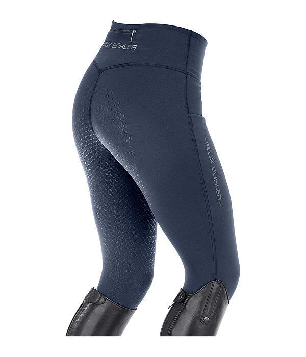 Mallas de invierno confeccionadas en tejido elástico y suave con elasticidad en cuatro direcciones y refuerzo de silicona en la entrepierna. Ajuste ceñido y cómodo. Transpirables y de secado rápido. Dos bolsillos para el móvil y un bolsillo trasero con cremallera. Estampados de silicona de Felix Bühler, cintura ancha con trabillas para el cinturón, sin costuras en las rodillas y aberturas de pierna flexibles.