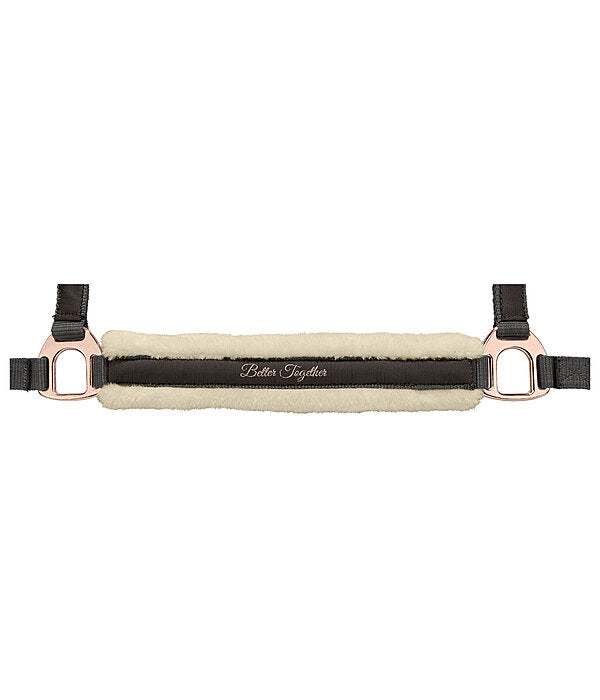 Haz que tu caballo luzca con estilo con esta exclusiva cabezada con detalles rose gold, diseñada para quienes buscan la combinación perfecta entre elegancia, comodidad y funcionalidad. Su diseño anatómico cuenta con acolchado de borreguillo sintético ultra suave, ideal para prevenir rozaduras y ofrecer el máximo confort incluso en usos prolongados.
