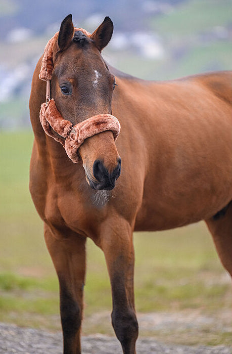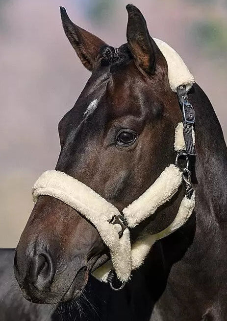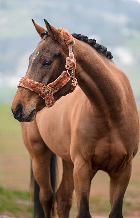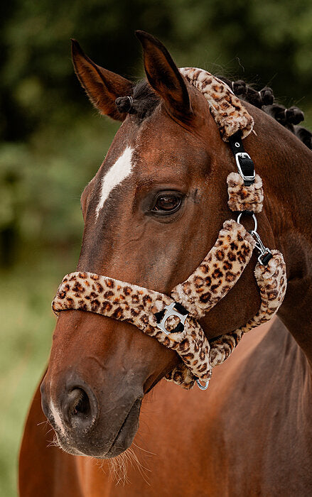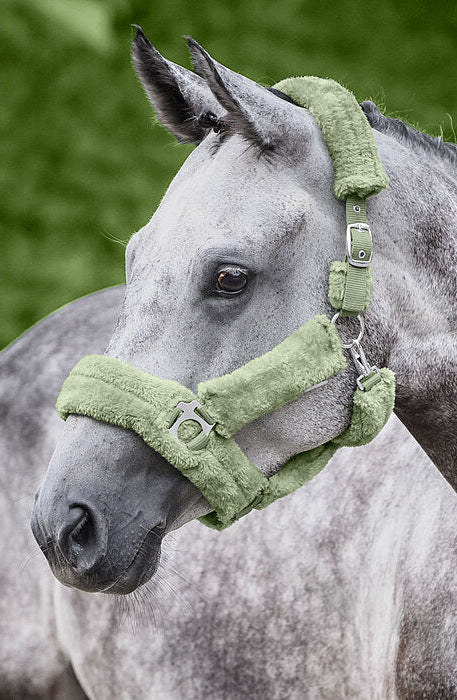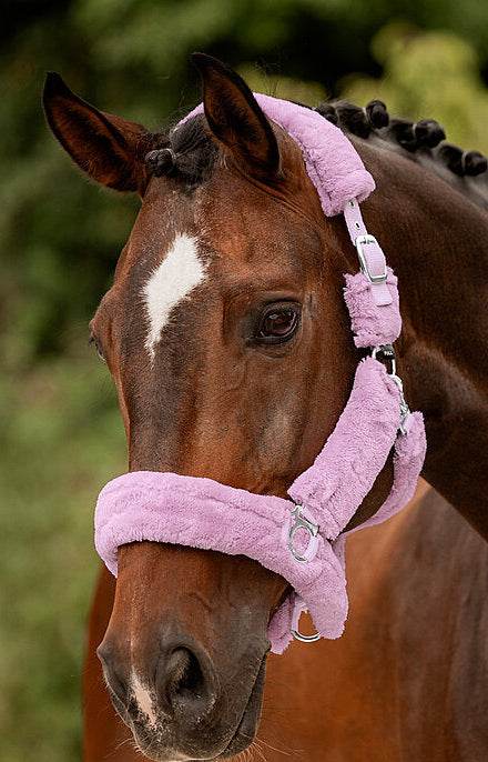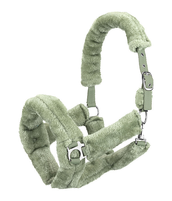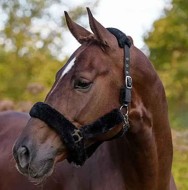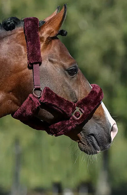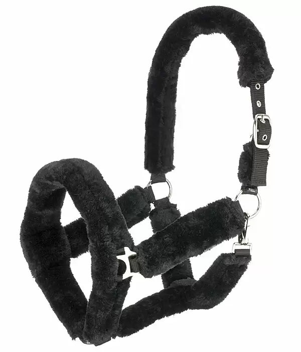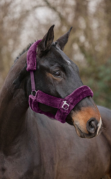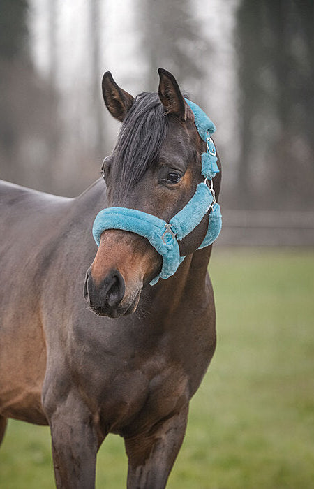 Cabezada de felpa completamente cubierta de suave forro polar. Las hebillas acolchadas evitan rozaduras y puntos de presión. Ajustable en la testera. Cabezada: 100 % polipropileno, forro polar: 100 % poliéster.